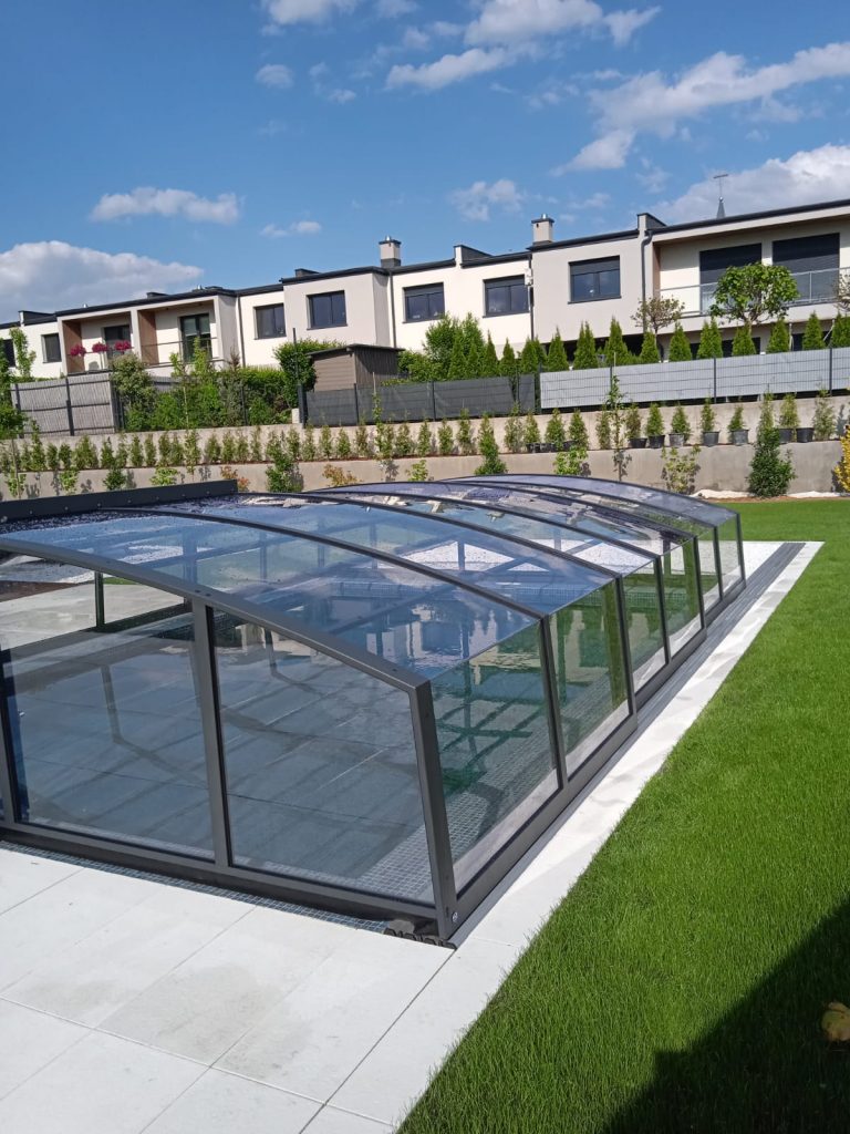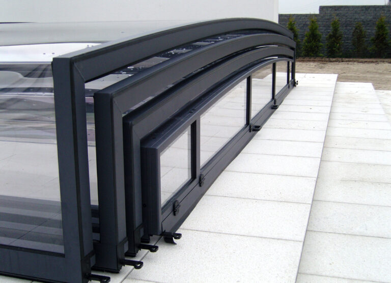 Aluna® BOX – zestaw do samodzielnego montażu zadaszenia basenowego, w którym znajdziesz wszystko to, co jest potrzebne, aby po kilku godzinach cieszyć się własnoręcznie zainstalowaną obudową.