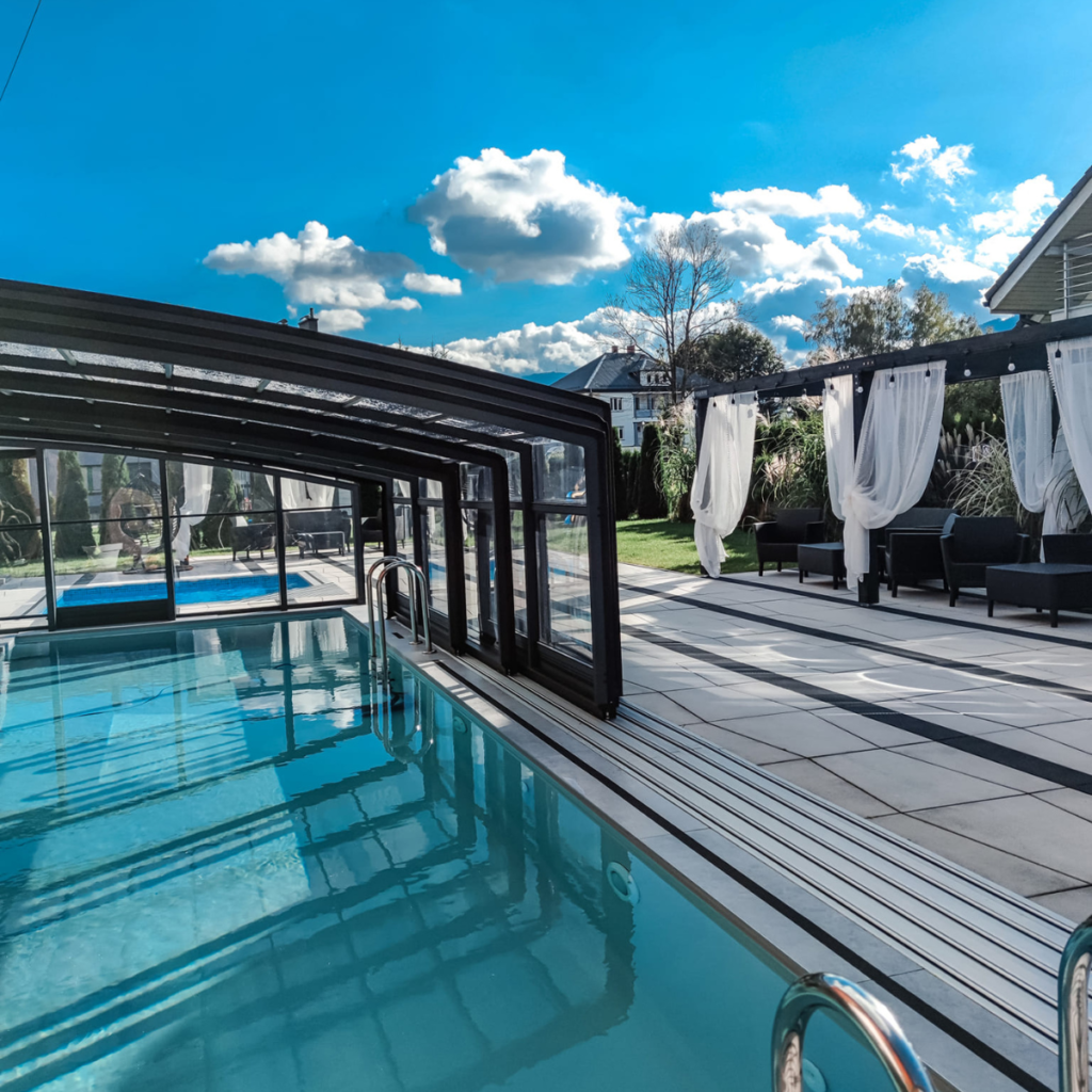 W naszej kolekcji zadaszeń basenowych znajdują się między innymi wysokie zadaszenia basenowe, tworzące trwałe i funkcjonalne konstrukcje.