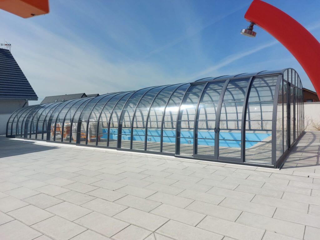 Interesują Cię wysokie zadaszenia basenowe? Sprawdź Aluna Opera! Są to wysokie zadaszenie basenowe przesuwne, dające możliwość uzyskania strefy aquapark.