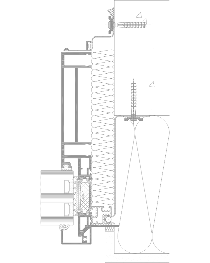 • system przeznaczony do wykonywania pionowych fasad zewnętrznych o podwyższonej izolacji termicznej, składających się z prefabrykowanych segmentów w formie ram z profili aluminiowych z wypełnieniem szklanym (ewentualnie innym materiałem) i montowanych na placu budowy z uszczelnieniem połączeń poprzez odpowiednie uszczelki EPDM;