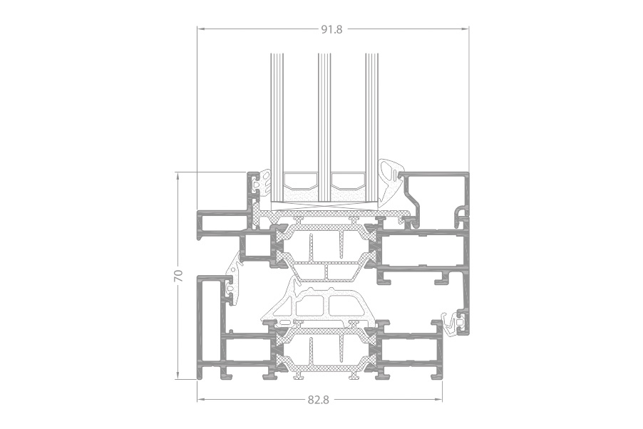 - system okienny z izolacją termiczną, charakteryzujący się gładką i smukłą linią profila;