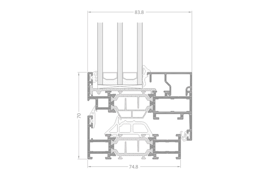 - system okienno-drzwiowy z izolacją termiczną, charakteryzujący się gładką i smukłą linią profila;